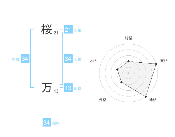 桜 万さんの天格は21画の5点!