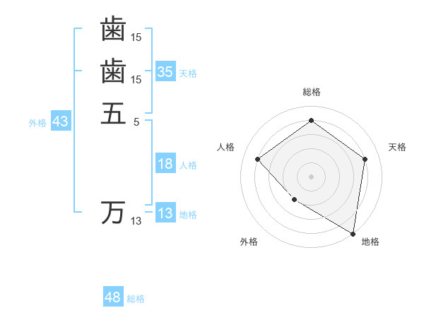歯歯五 万さんの外格は43画の2点!