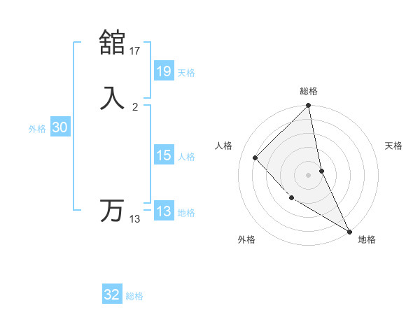 舘入 万さんの総格は32画の5点!
