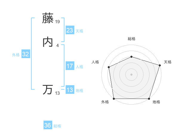 藤内 万さんの外格は32画の5点!