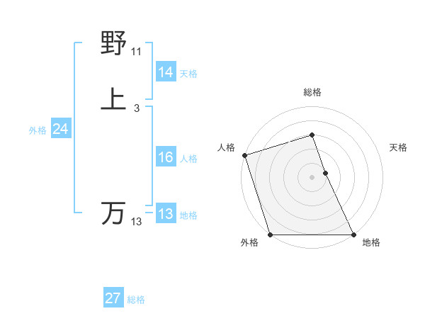 野上 万さんの外格は24画の5点!