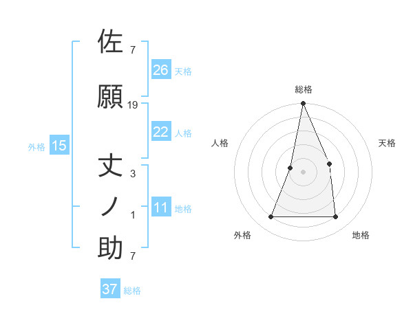 佐願 丈ノ助さんを姓名の画数から五運を鑑定