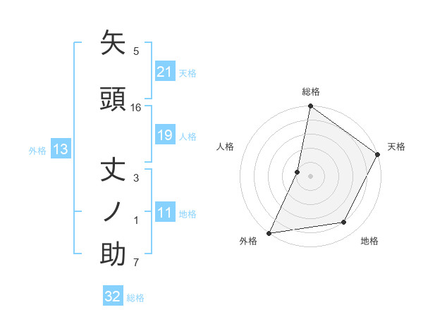 矢頭 丈ノ助さんを姓名の画数から五運を鑑定