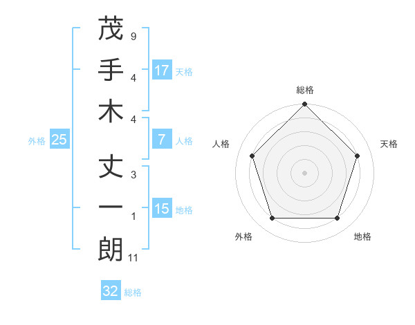 茂手木 丈一朗さんの総格は32画の5点