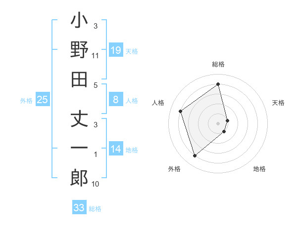 小野田 丈一郞さんを姓名の画数から五運を鑑定