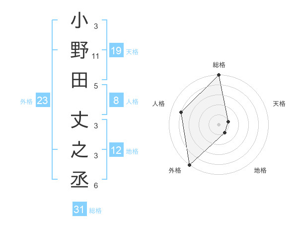小野田 丈之丞さんを姓名の画数から五運を鑑定
