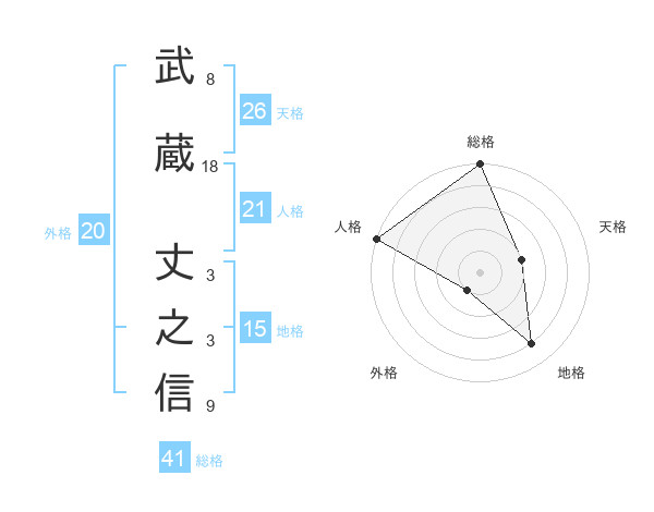 武蔵 丈之信さんを姓名の画数から五運を鑑定