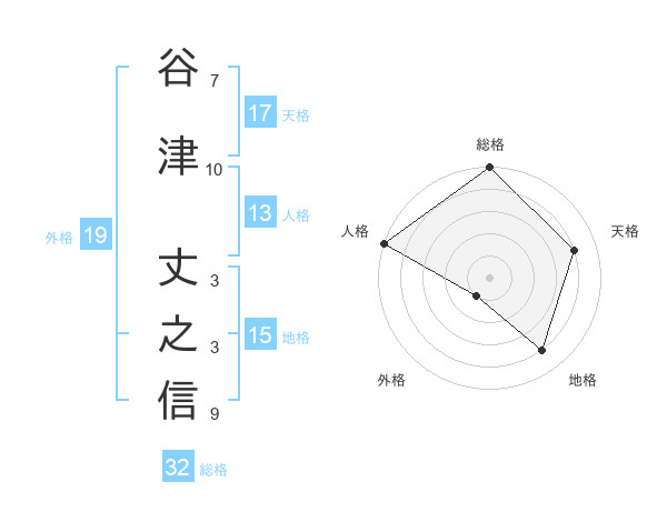 谷津 丈之信さんの総格は32画の5点!