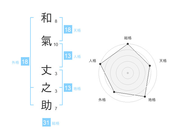 和氣 丈之助さんを姓名の画数から五運を鑑定