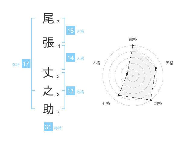 尾張 丈之助さんを姓名の画数から五運を鑑定