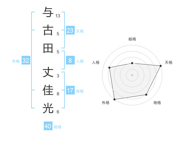 与古田 丈佳光さんを姓名の画数から五運を鑑定
