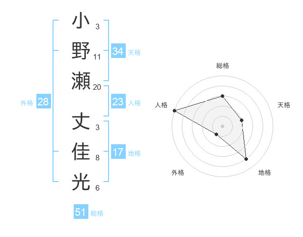 小野瀬 丈佳光さんを姓名の画数から五運を鑑定
