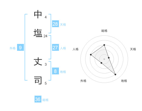中塩 丈司さんの総格は36画の3点!