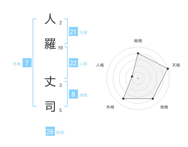 人羅 丈司さんの総格は29画の4点!