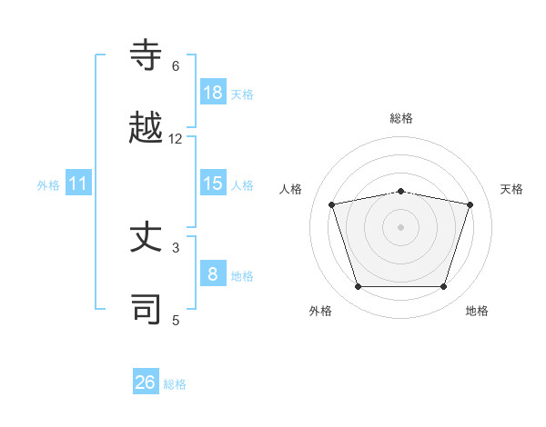 寺越 丈司さんを姓名の画数から五運を鑑定