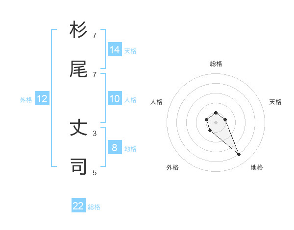 杉尾 丈司さんの総格は22画の1点!