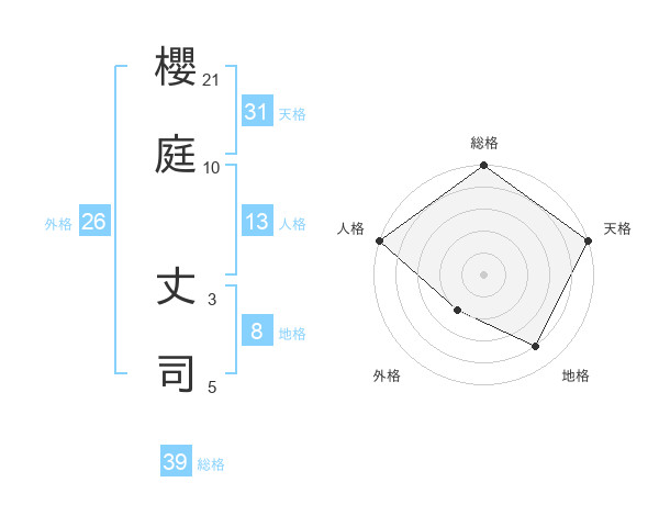 櫻庭 丈司さんの総格は39画の5点!