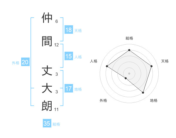 仲間 丈大朗さんを姓名の画数から五運を鑑定