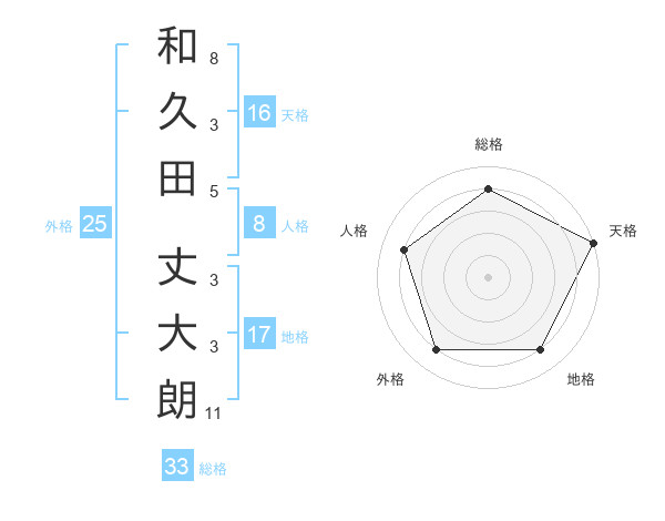和久田 丈大朗さんを姓名の画数から五運を鑑定
