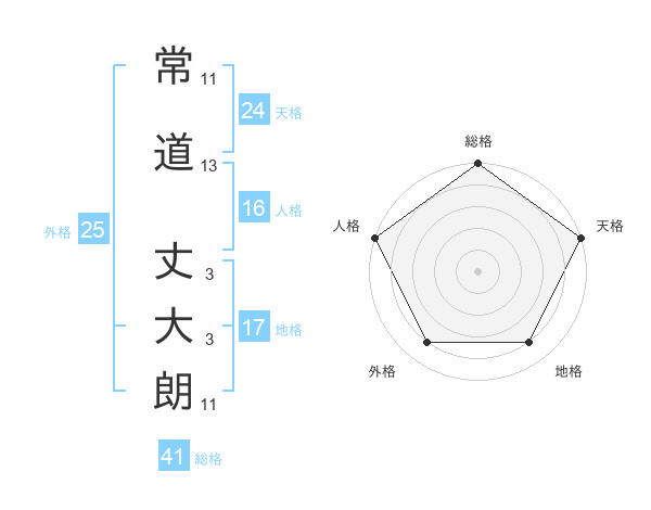 常道 丈大朗さんを姓名の画数から五運を鑑定