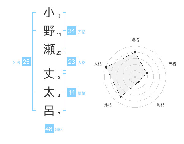 小野瀬 丈太呂さんを姓名の画数から五運を鑑定