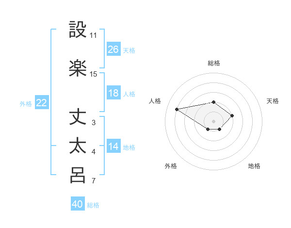 設楽 丈太呂さんの外格は22画の1点!