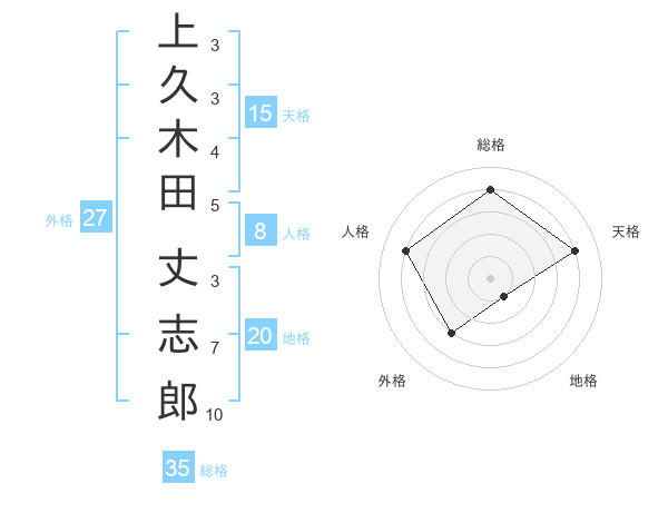 上久木田 丈志郎さんの総格は35画の4点!
