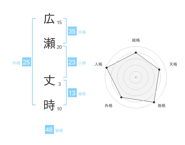 広瀬 丈時さんを姓名の画数から五運を鑑定