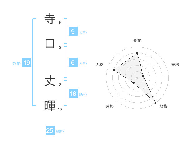 寺口 丈暉さんの総格は25画の4点!