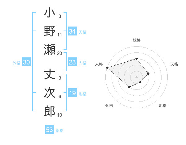 小野瀬 丈次郎さんを姓名の画数から五運を鑑定