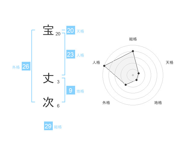 宝 丈次さんの総格は29画の4点!
