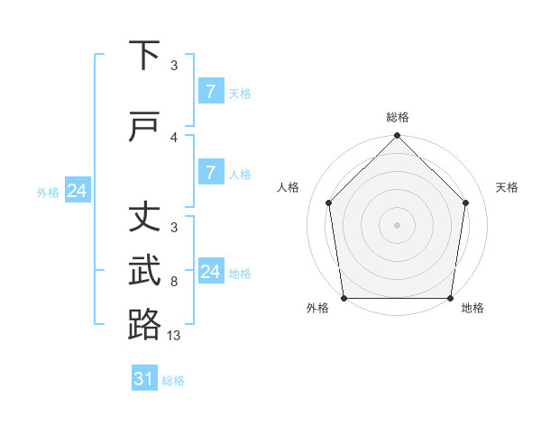 下戸 丈武路さんを姓名の画数から五運を鑑定
