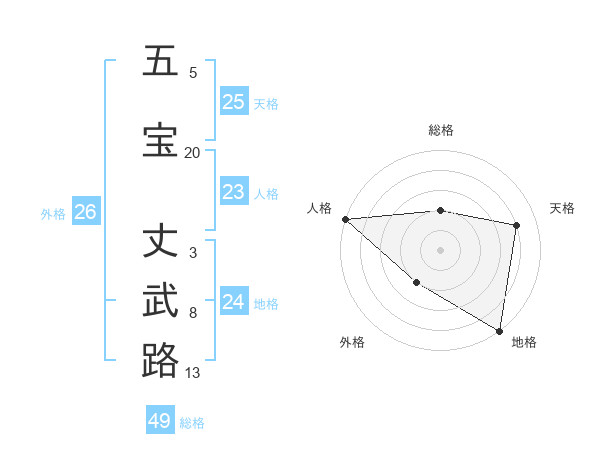 五宝 丈武路さんを姓名の画数から五運を鑑定