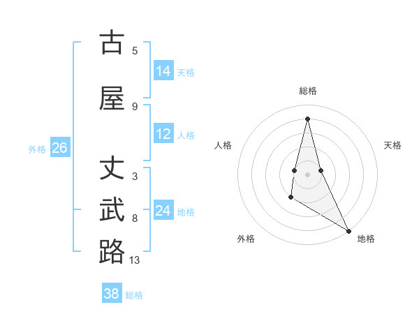 古屋 丈武路さんを姓名の画数から五運を鑑定