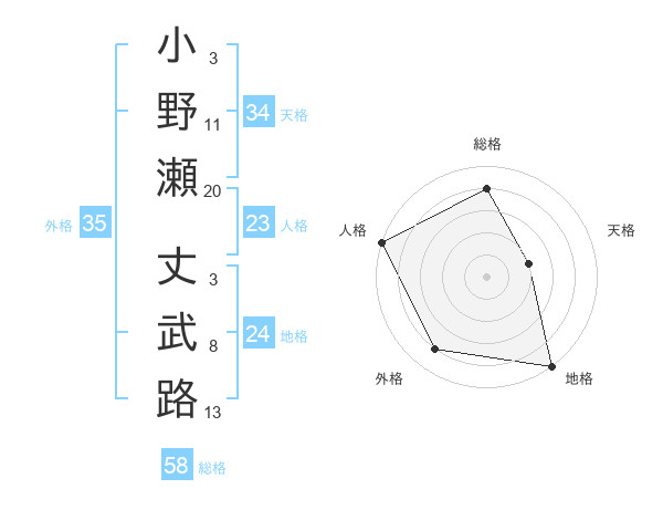 小野瀬 丈武路さんを姓名の画数から五運を鑑定