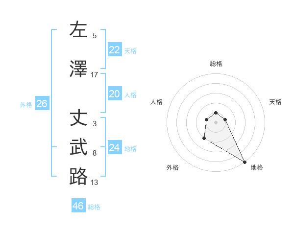 左澤 丈武路さんを姓名の画数から五運を鑑定