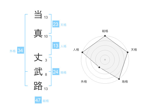 当真 丈武路さんを姓名の画数から五運を鑑定