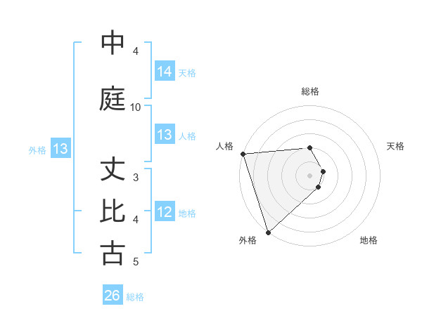 中庭 丈比古さんの外格は13画の5点!