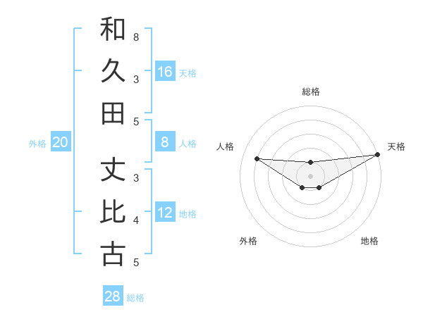 和久田 丈比古さんの天格は16画の5点!