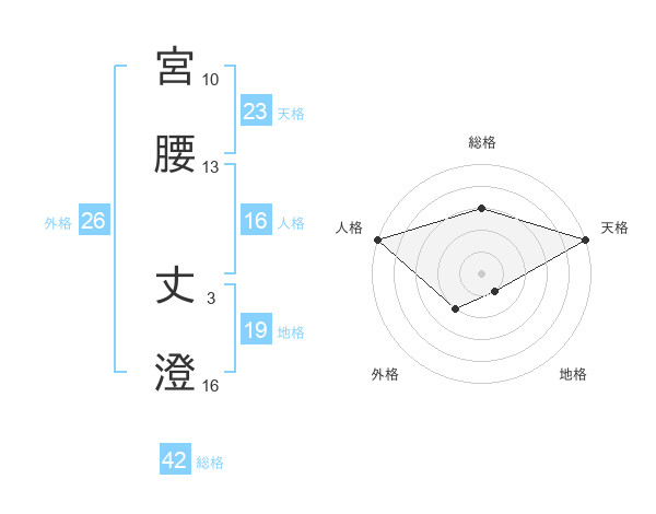 宮腰 丈澄さんを姓名の画数から五運を鑑定