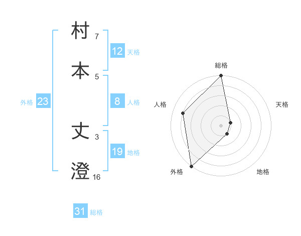 村本 丈澄さんの総格は31画の5点!