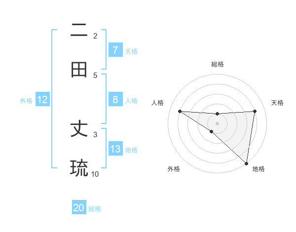 二田 丈琉さんを姓名の画数から五運を鑑定