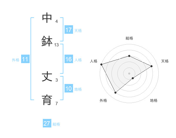 中鉢 丈育さんの総格は27画の3点!
