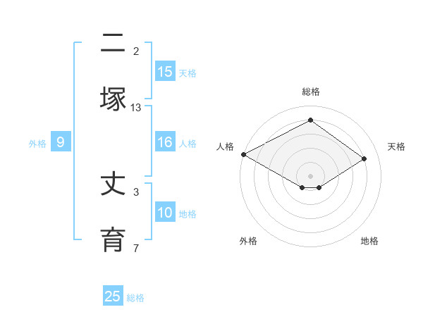 二塚 丈育さんの総格は25画の4点!