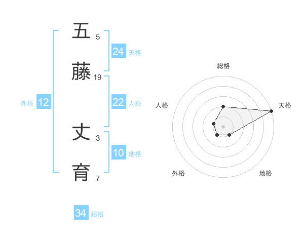五藤 丈育さんの総格は34画の2点!