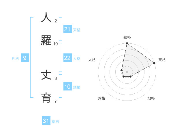人羅 丈育さんを姓名の画数から五運を鑑定