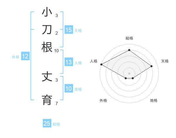 小刀根 丈育さんの総格は25画の4点!