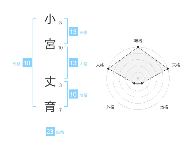 小宮 丈育さんの総格は23画の5点!