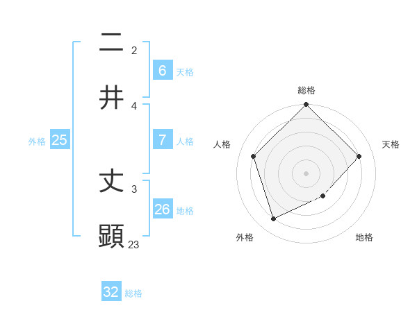 二井 丈顕さんの総格は32画の5点!