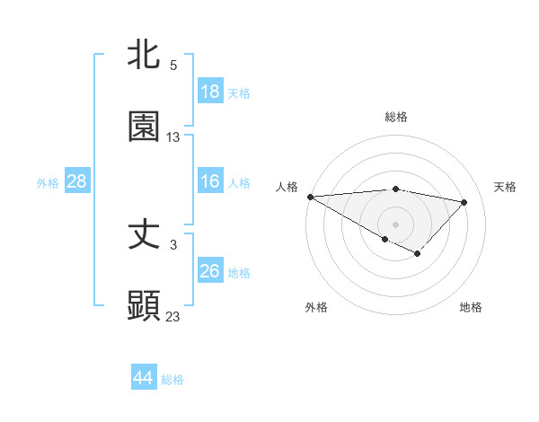 北園 丈顕さんを姓名の画数から五運を鑑定